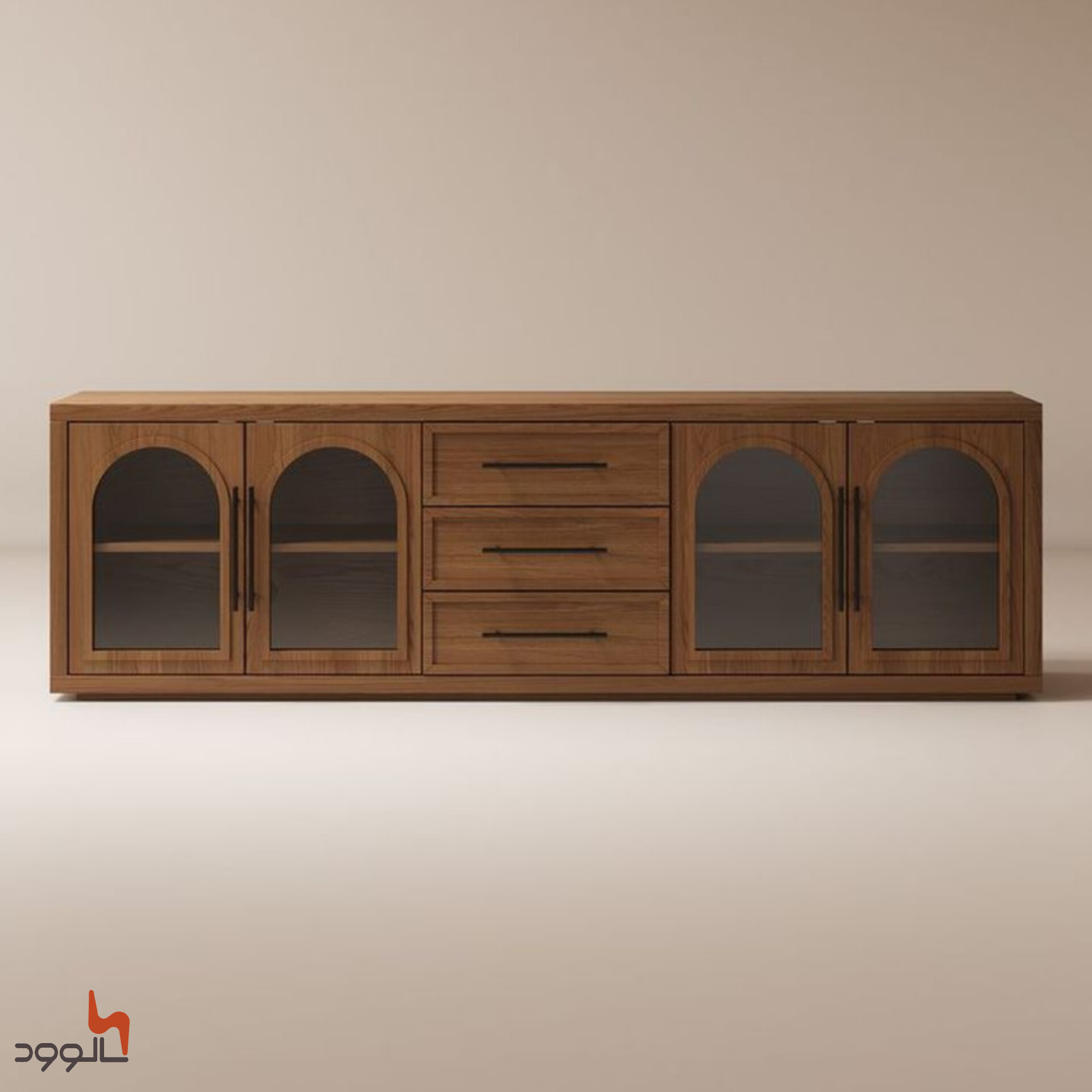 میزکنسول مدل رافائل جنس بدنه تمام ام دی اف روکش وکیوم در رنگ های مختلف قابل اجرا می باشد درب استفاده شده از شیشه